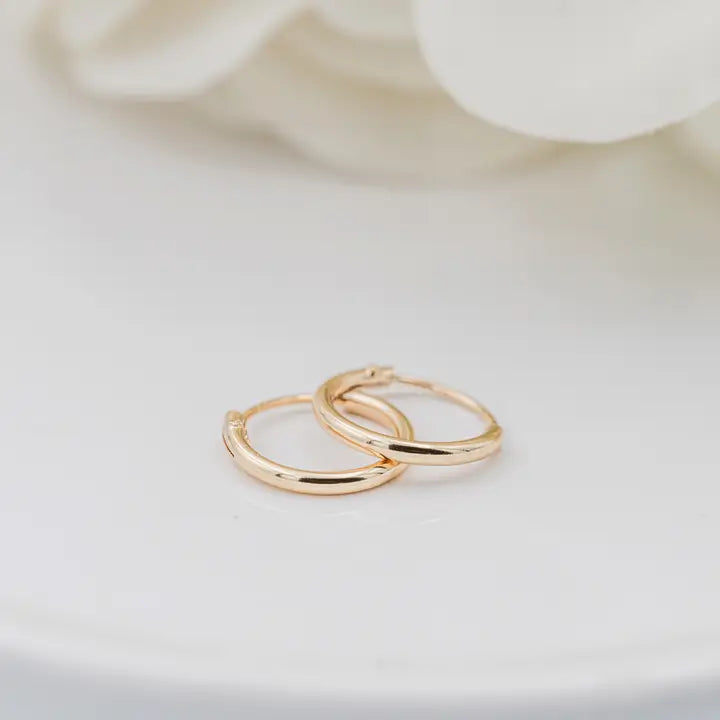 Small 14K gold-plated (over sterling silver) endless hoop earrings for girls! Great first hoops for children, kids, toddlers, and little girls. These earrings are hypoallergenic and nickel free and should not irritate sensitive ears.
