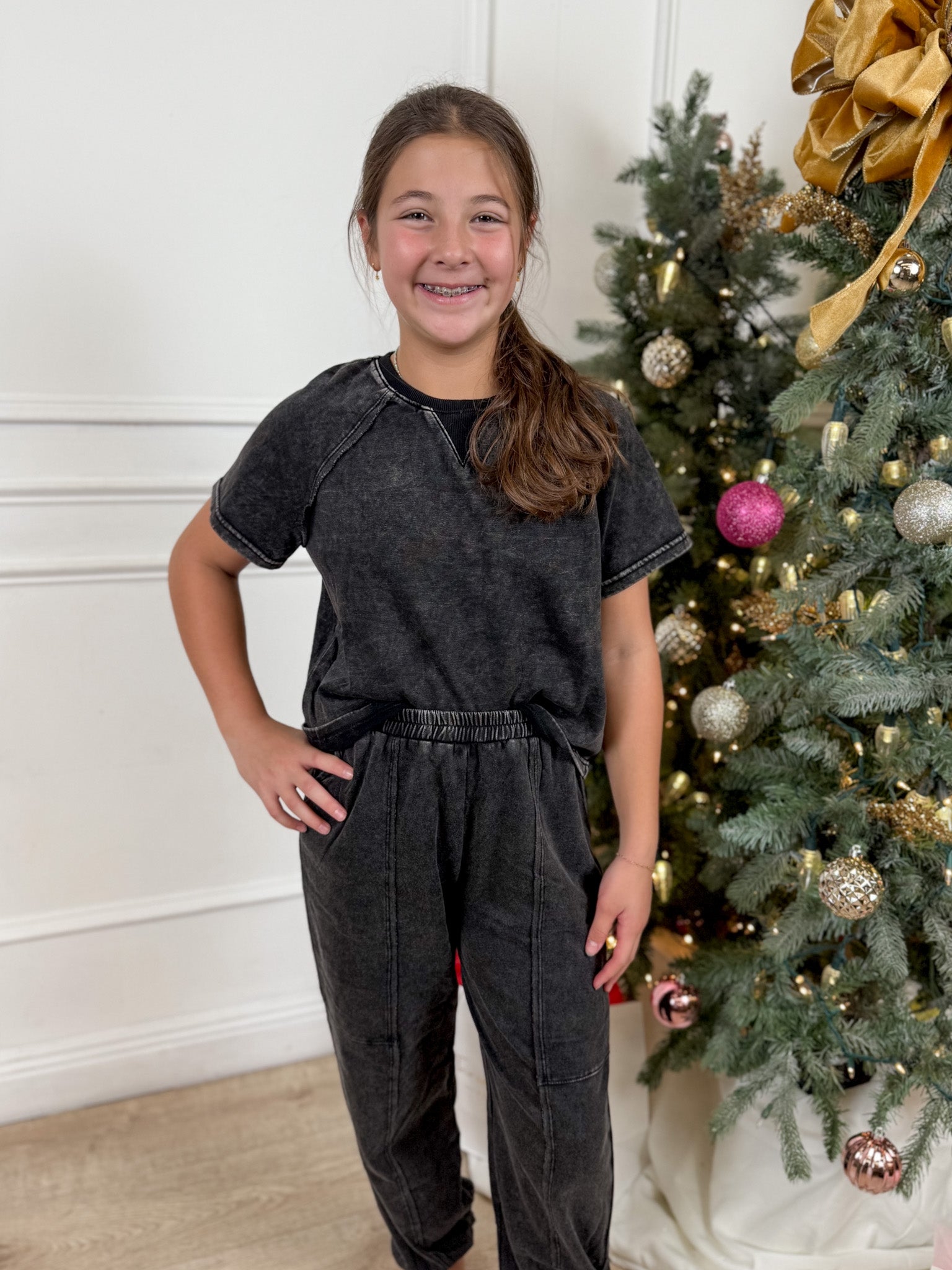 Black Washed Short Sleeve Top