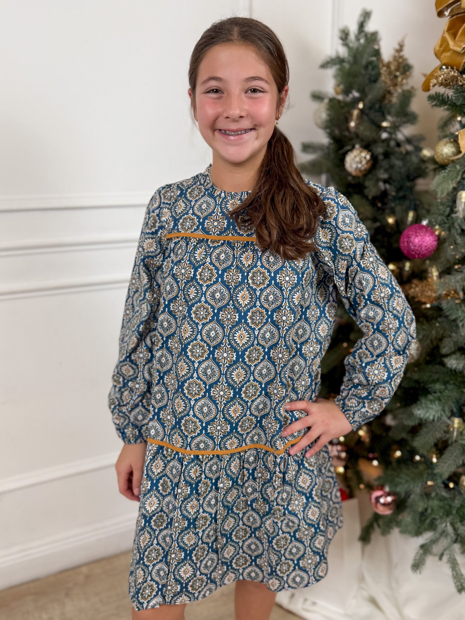 Denim Block Print Dress