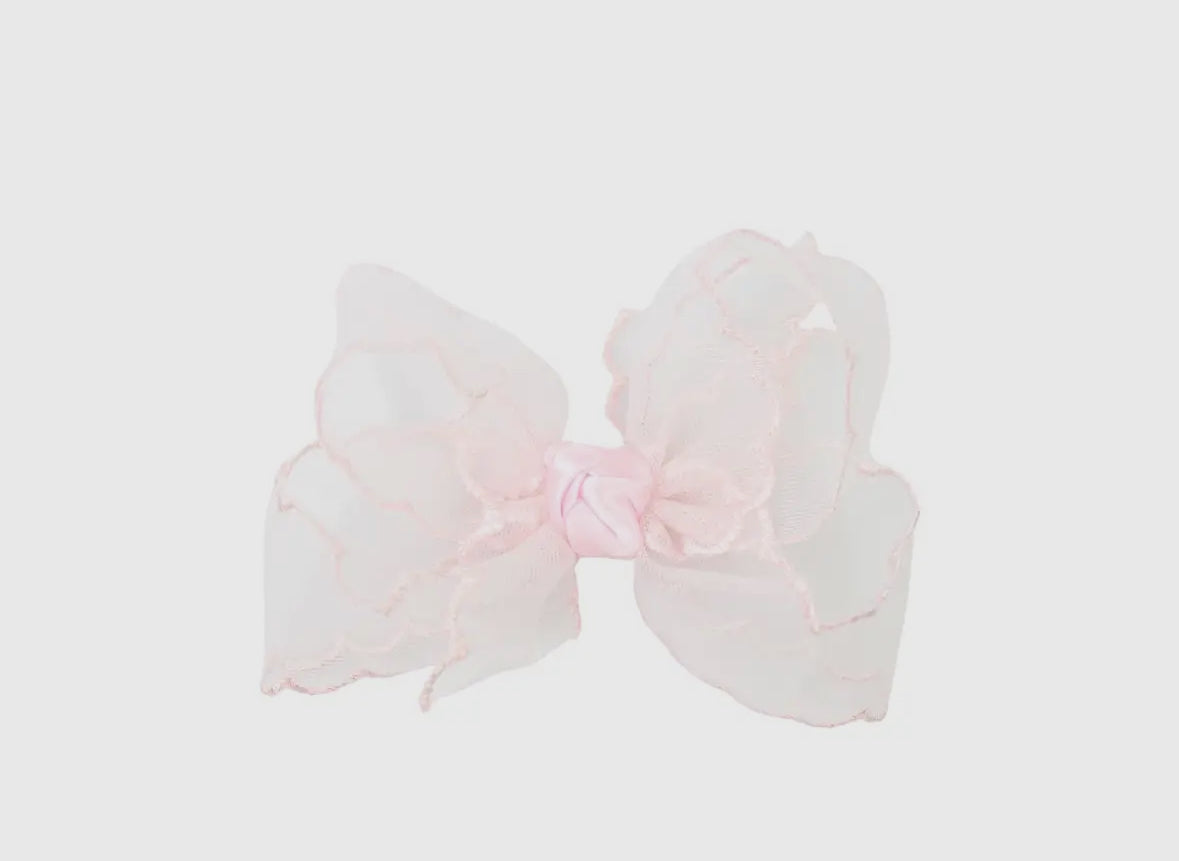 Scalloped Organza Bow on Alligator Clip 3.5, L Pink