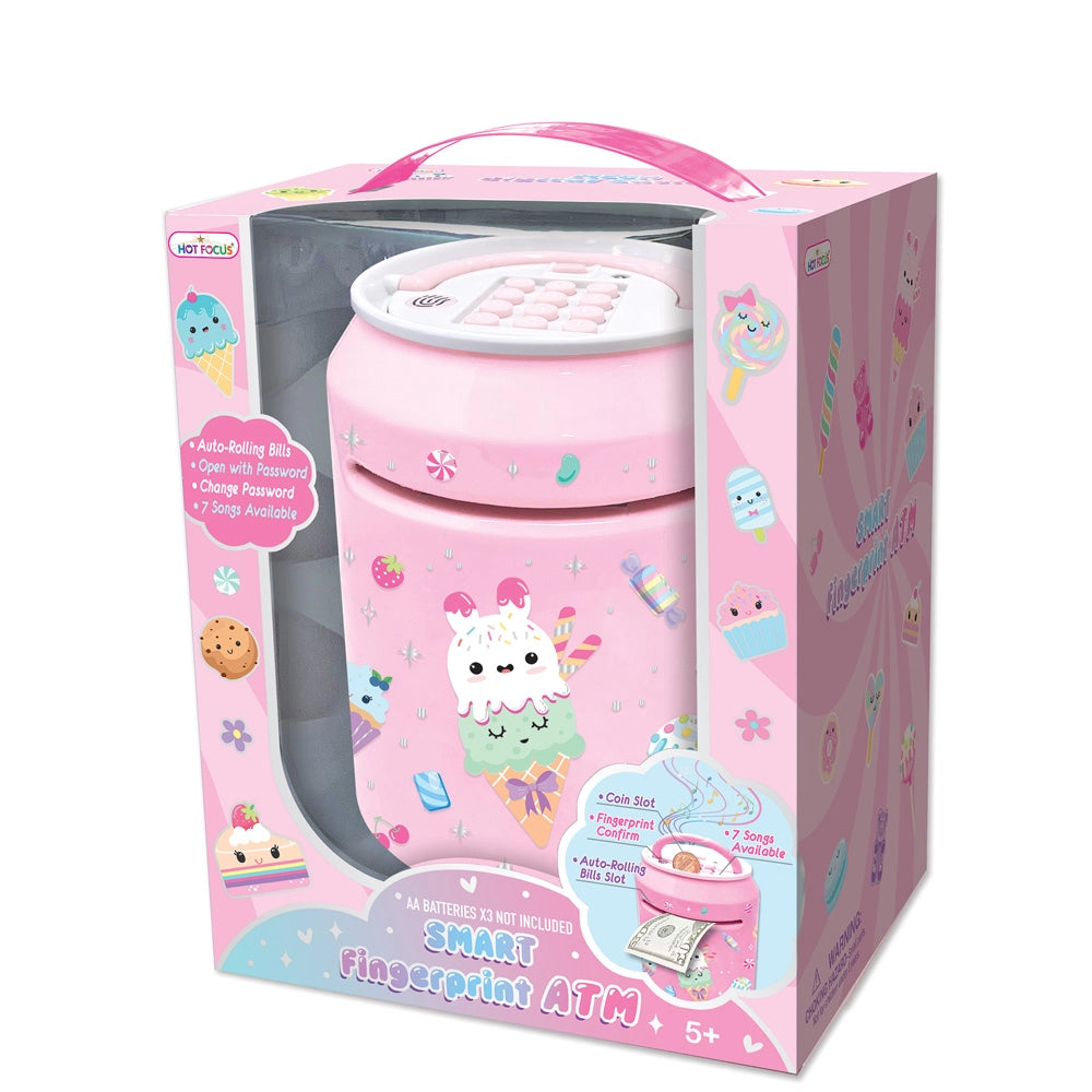 Hey Kids! Ready to make saving money even more fun? A fun way to save coins and bills, also plays a catchy tune! Contains: 1 Smart Fingerprint ATM (with coin slot and bill feeder)