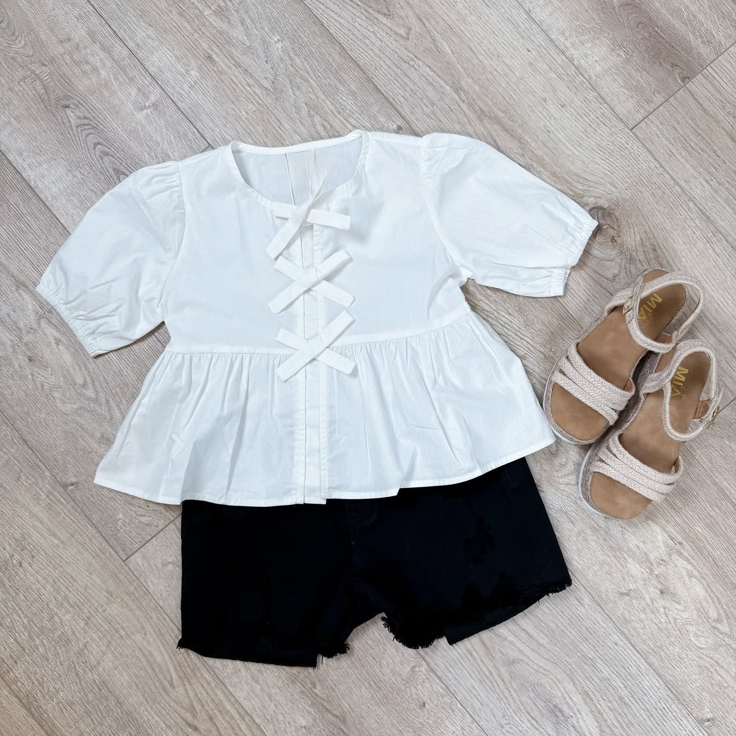 White Solid Cotton Poplin Front Tie Ribbon Blouse